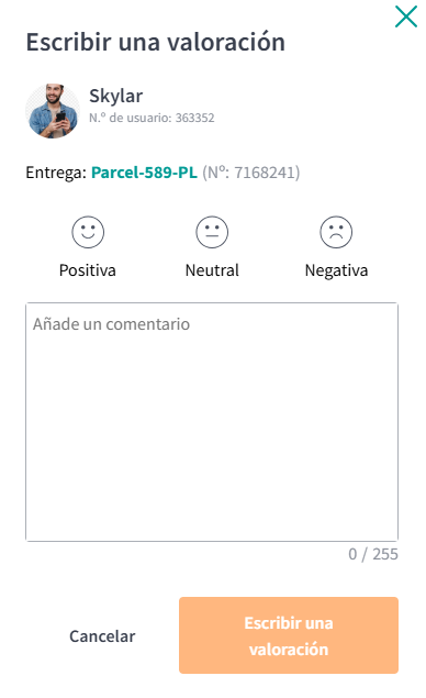 3) Elige el tipo de valoración (positiva, neutral, negativa) y añade un comentario.
