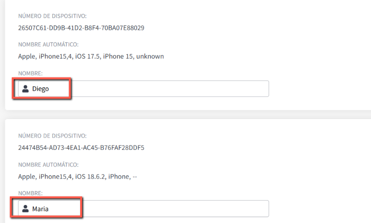 - Edita los nombres. Te recomendamos que personalices los nombres para todos los dispositivos: