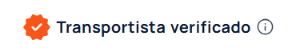 Este distintivo indica que el transportista es de máxima confianza. Para poder obtenerla, han tenido que realizar al menos 40 trabajos completos, haber recibido 20 comentarios, y un 95% mínimo de valoraciones positivas. Además, el primer envío se ha realizado al menos 60 días antes, y posee bajos índices de trabajos cancelados o con retrasos.